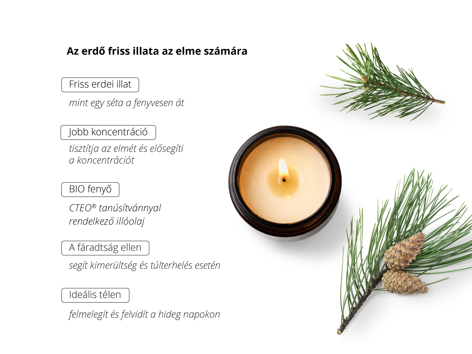 hangulatát egy természetes aromaterápiás gyertyával, fenyő