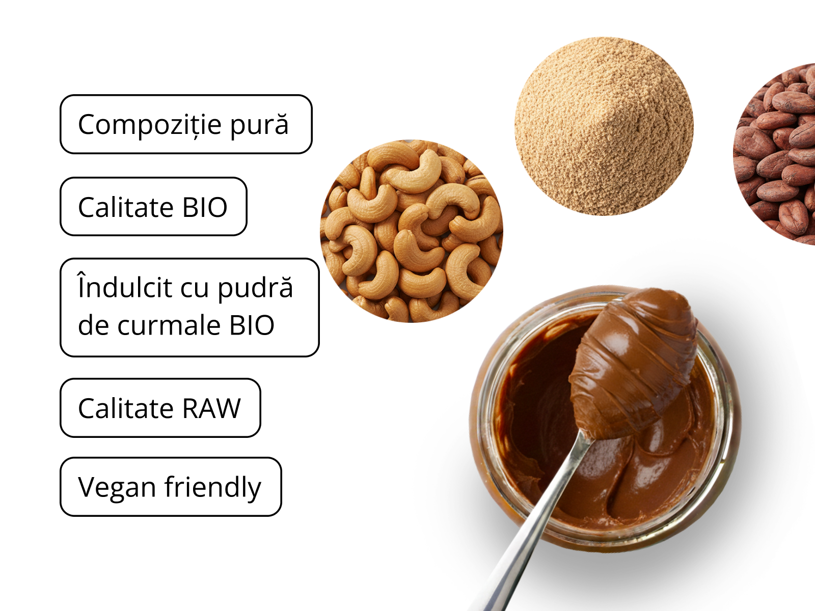 ingrediente de cea mai bună calitate – nuci caju, boabe de cacao și alte